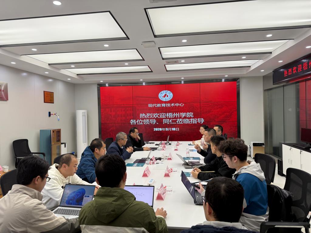近日,梧州学院现代教育技术中心主任冀肖榆带领科室骨干一行,莅临我中心交流指导。我中心主任谭可久率相关负责人及业务科室工作人员陪同交流,双方围绕校园信息化建设重点工作展开深入研讨。